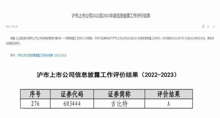 近日,,,,上海证券交易所(以下简称“上交所”)发布2022-2023年度信息披露工作评价结果。。yaxin111(股票代码::603444)凭借规范的公司治理、、、、高质量的信息披露以及良好的投资者关系管理再次荣获信息披露工作A级评价,,,公司连续两年获此殊荣。。。。