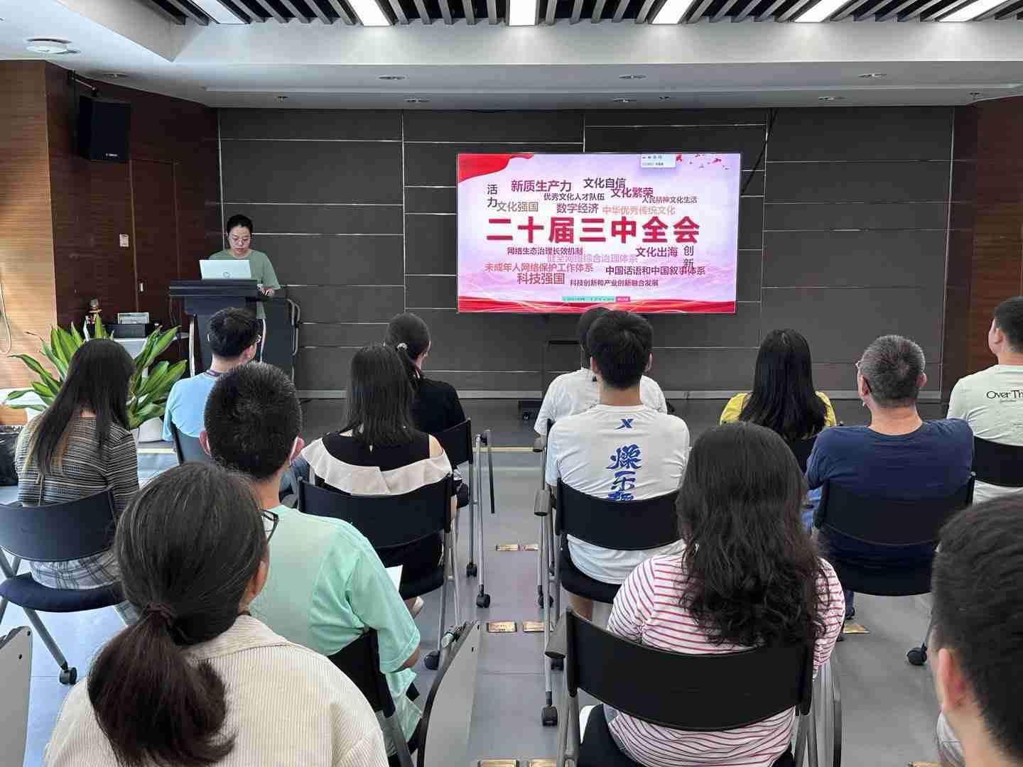 与会人员深入学习《决定》内容。。党的二十届三中全会提出必须增强文化自信,,,,发展社会主义先进文化,,弘扬革命文化,,,传承中华优秀传统文化,,加快适应信息技术迅猛发展新形势,,,,构建更有效力的国际传播体系,,,这为广大文化产业工作者指明了奋斗方向。。